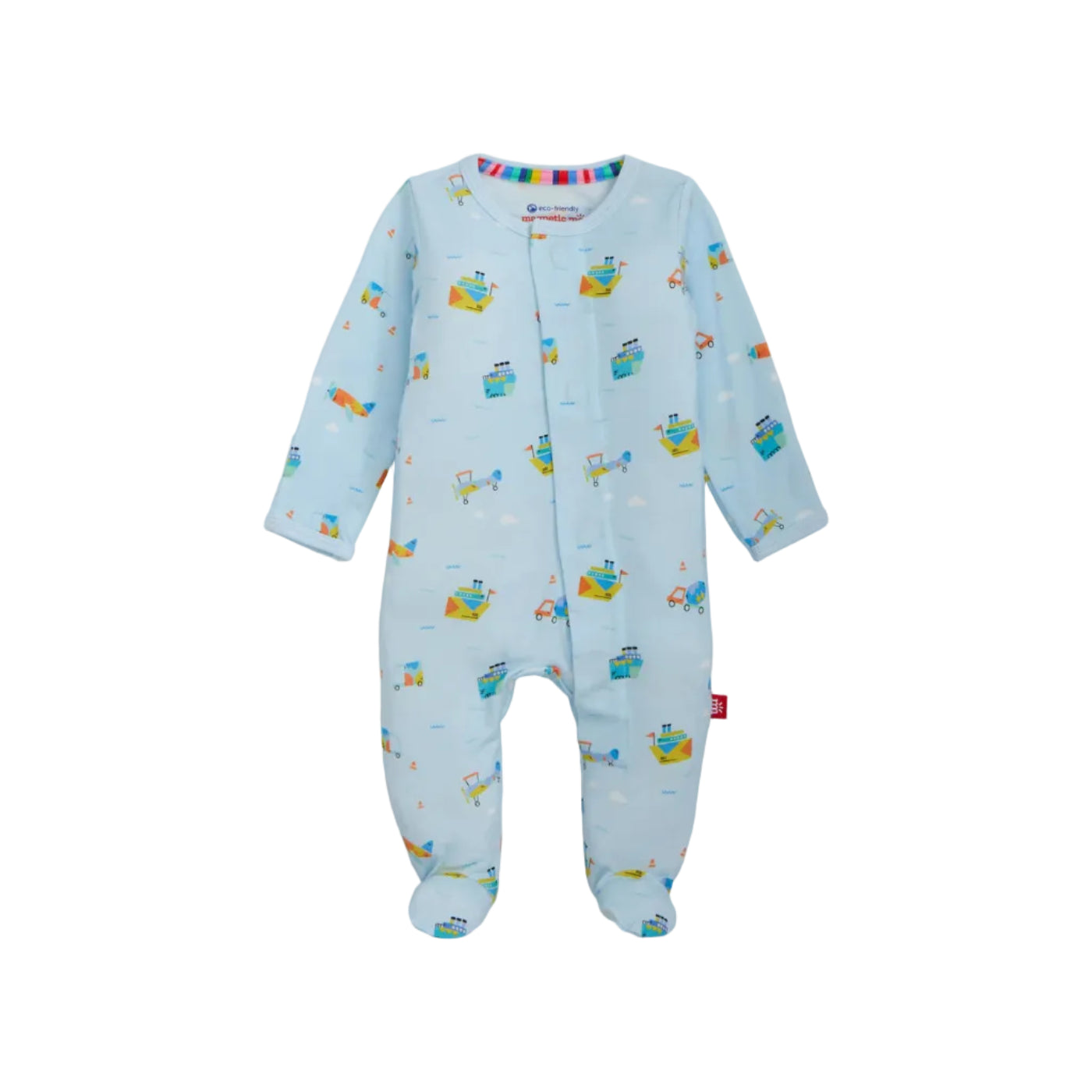 • Magnetic closures: magnets line the seam from the neck to upper thigh for sizes up to 0-3m & from neck to crotch for sizes 3-6m and up.