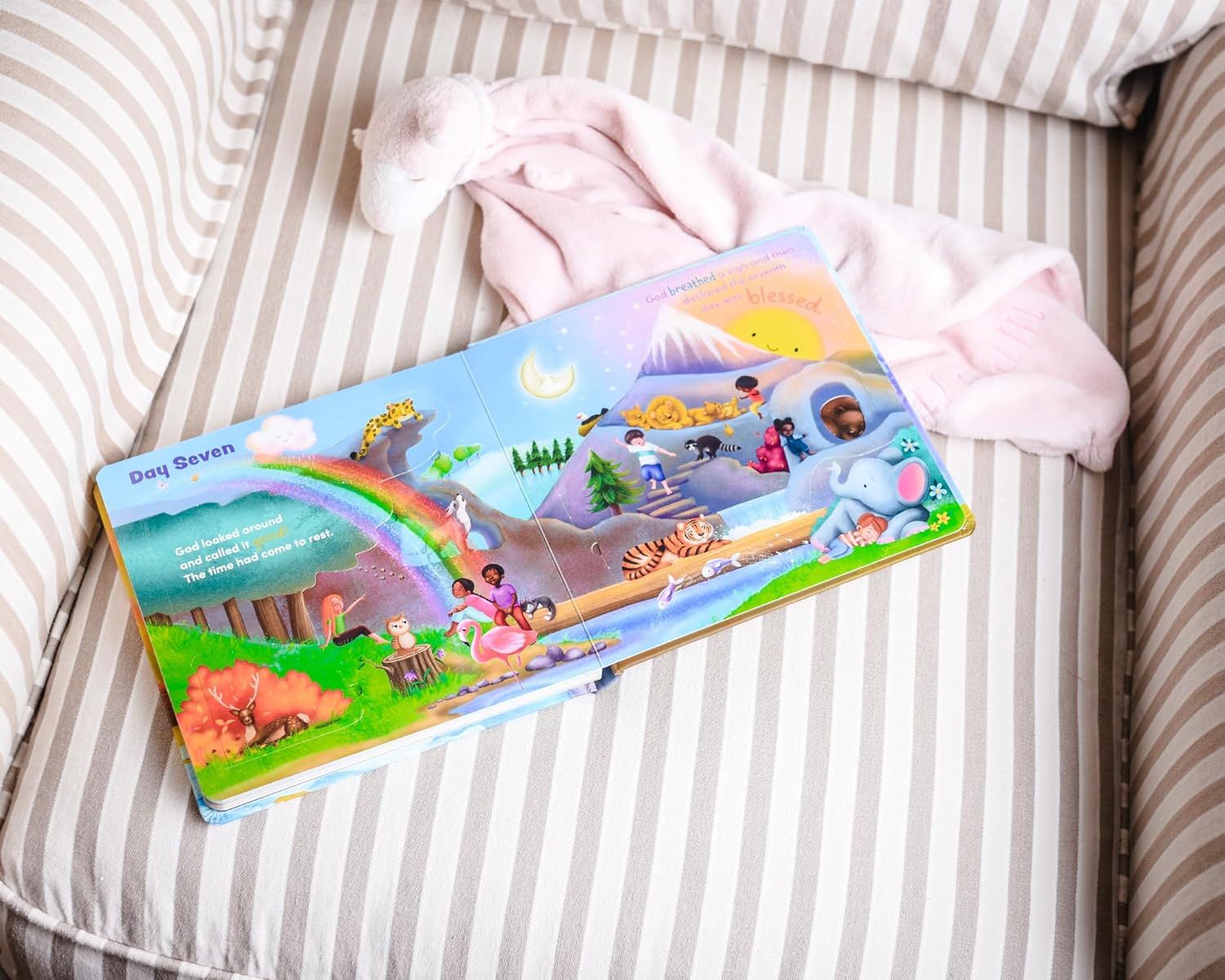 Discover the creation story with over 40 flaps in this board book that's perfect for curious little ones! See What God Made! Based on the story of creation found in Genesis 1–2, highlights the events of the seven days in which God made heaven and earth and rested from His wonderful work. This rhyming, interactive board book is for ages 0 to 4; features multiple flaps on every page that unveil God's playful nature and beautiful creation; includes a prayer for God's world; and is a great gift for baby dedications, baptisms, birthdays, and holidays. Kids will love pointing out each creation they discover, from towering trees to soaring seagulls to whistling whales, and parents will love sharing this simple introduction to just how much God loves us. After all, God made a beautiful world, and you're a part of it! Lift the flaps in this rhyming story of creation and see what God made.